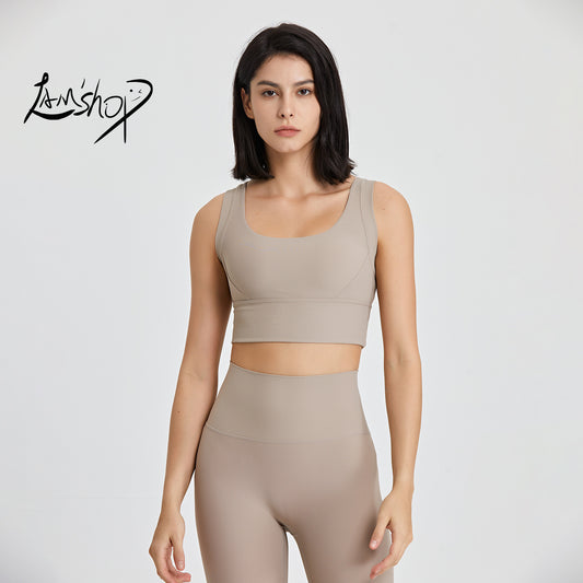 Lamshop European and American high-strength beauty back fitness vest women's running shock-proof sports underwear high elastic gathering nude yoga bra