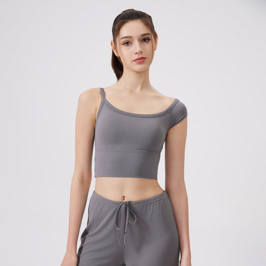 Lamshop cool sports bra antibacterial running with chest pad shockproof fitness underwear tight asymmetrical yoga vest casual