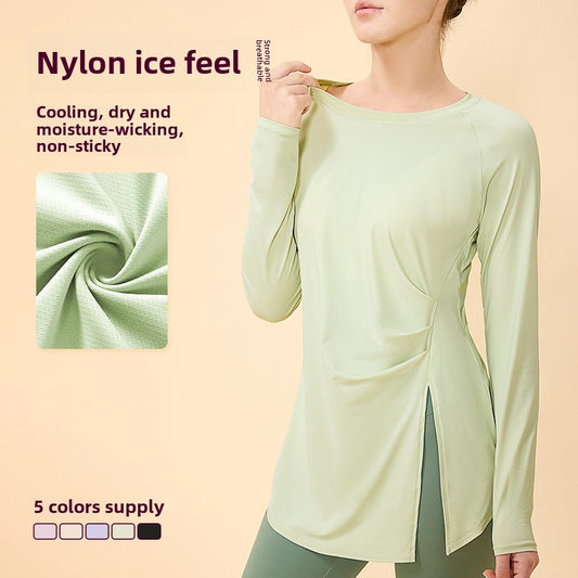 Lamshop autumn and winter new yoga sports top loose breathable thin hip cover T-shirt running fitness long sleeves