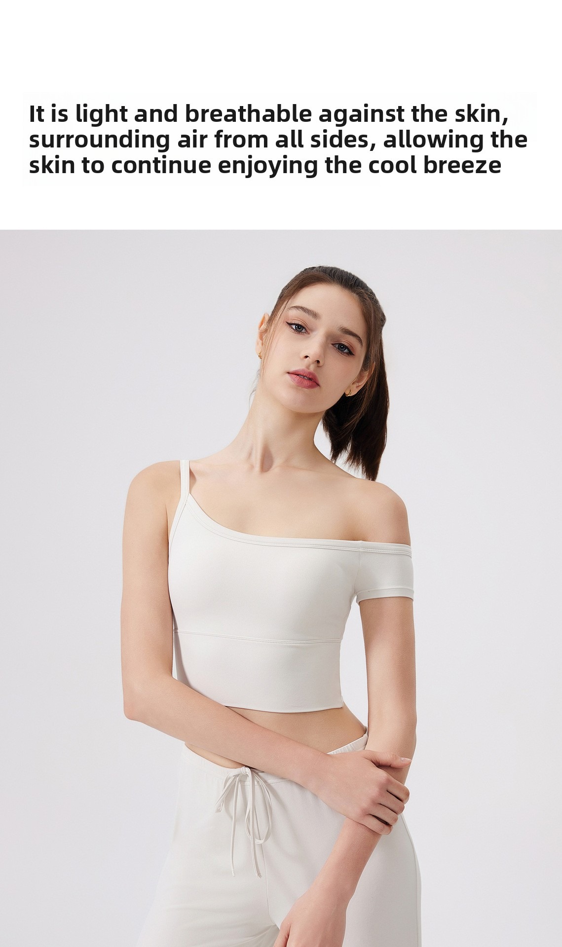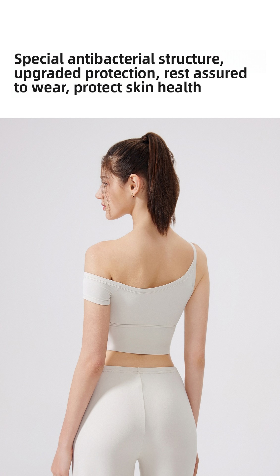 The asymmetrical design adds a stylish touch to your gym or casual wear, while the built-in chest pad provides excellent shockproof support during high-impact activities. Its antibacterial fabric technology prevents odor buildup, making it perfect for long training sessions or outdoor excursions. The snug yet flexible fit ensures freedom of movement without sacrificing support, whether you're hitting the yoga mat or exploring the trails.