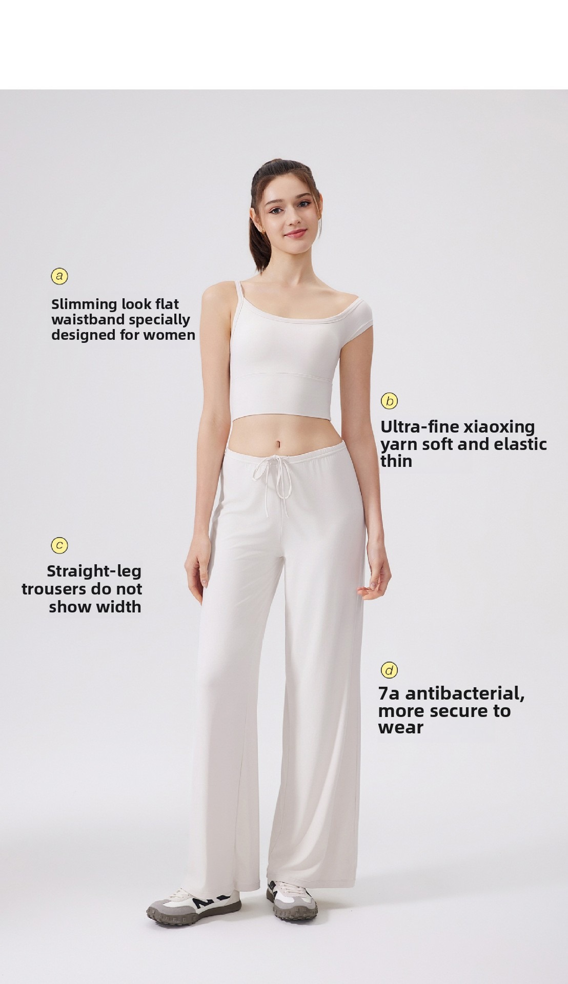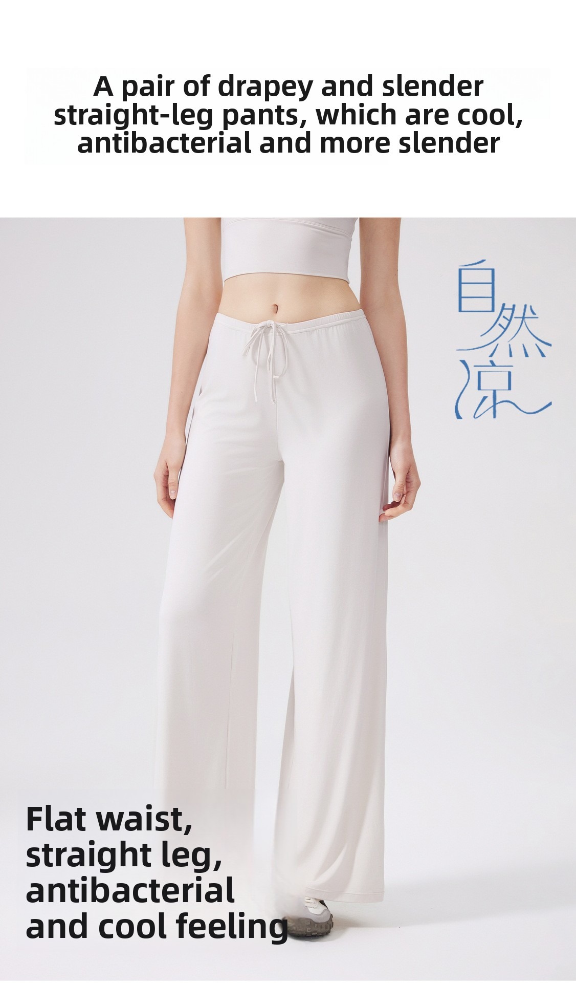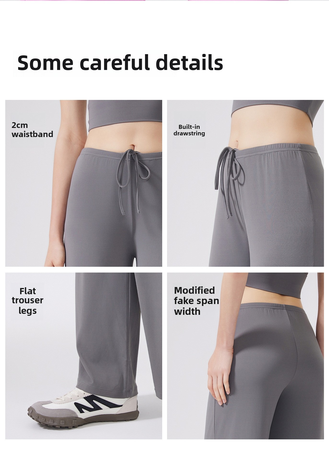 Lamshop cool wide-leg sports trousers antibacterial loose and thin down sports trousers outdoor running yoga trousers straight-leg trousers