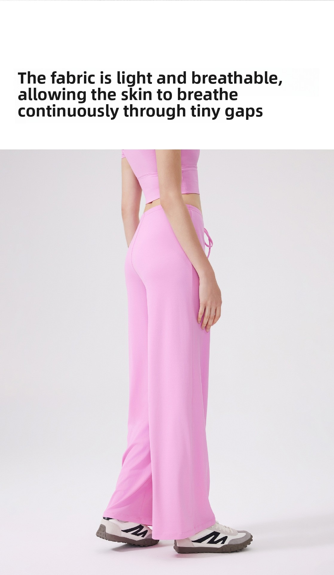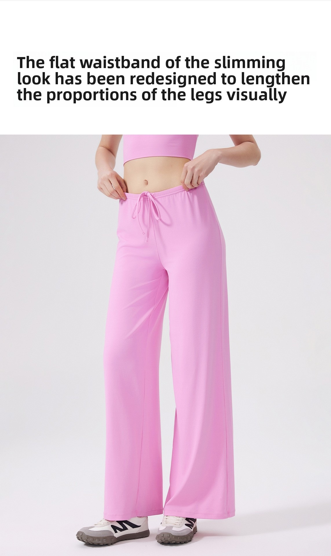 Designed with a loose, thin, and breathable construction, these wide leg sports trousers provide ultimate freedom of movement while maintaining a sleek straight leg silhouette. The lightweight material ensures cool comfort even during the hottest workouts, perfect for those who value both performance and style in their yoga and stretch apparel.