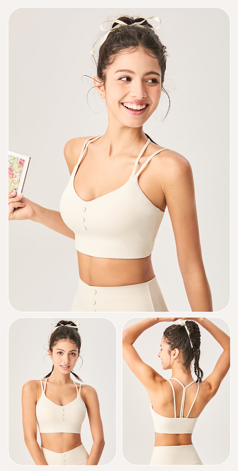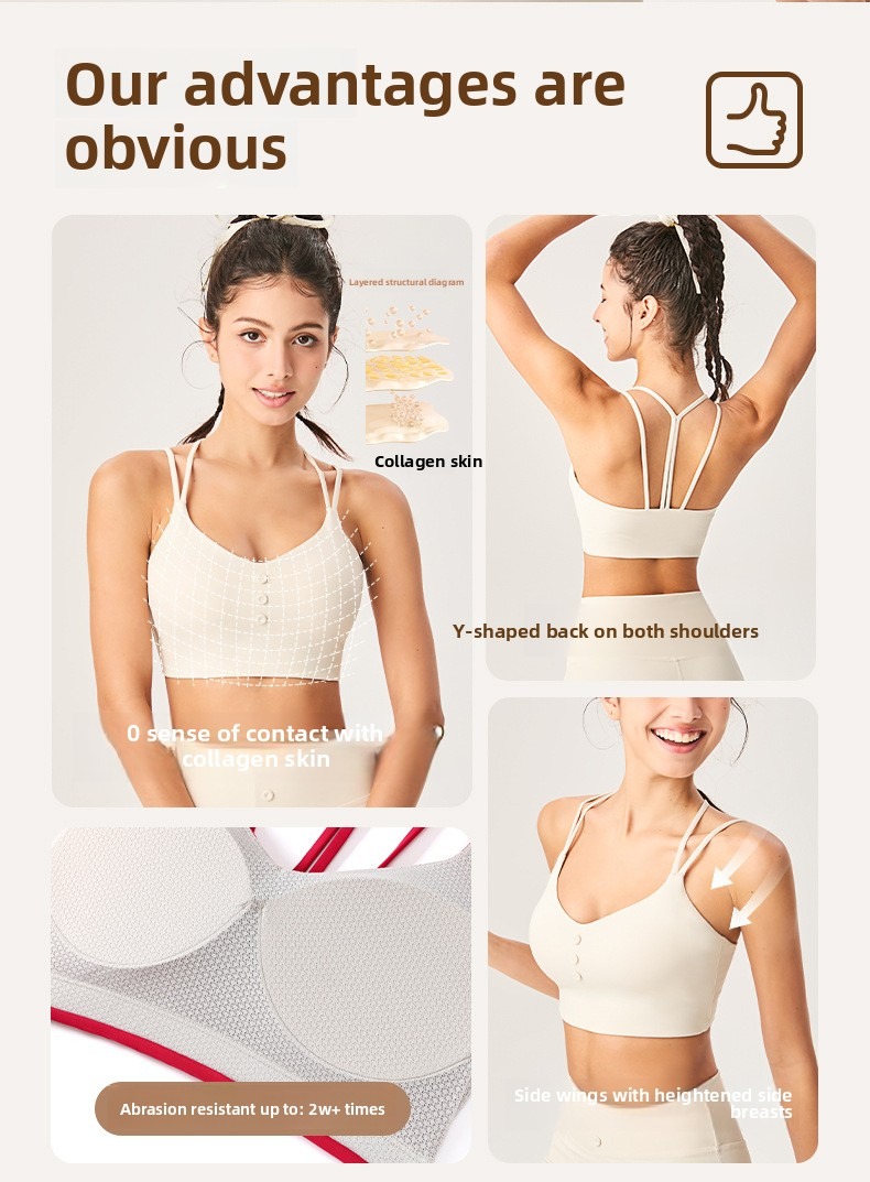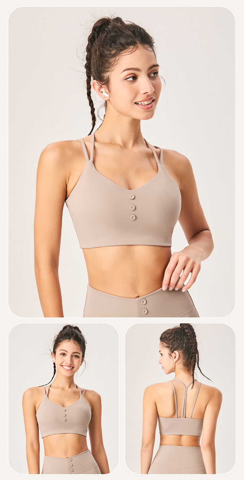 Lamshop's new cross-border nude and thin Y-shaped beautiful back fitness sports underwear seamless shock-proof cover breast yoga underwear