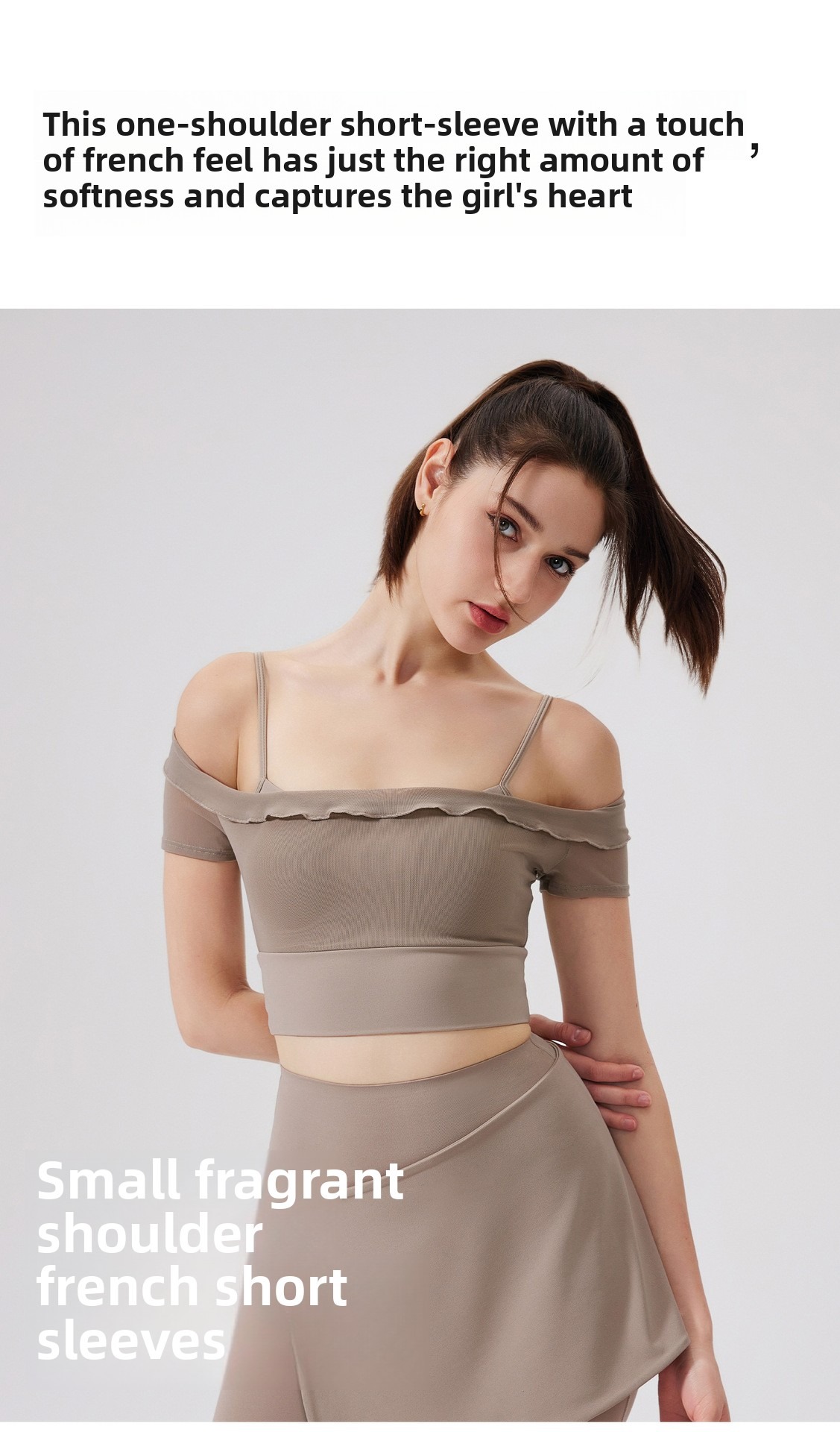 MAD LION pure desire wind lace mesh yoga clothes short sleeves with chest pads running quick drying sports bra one cup fitness clothes