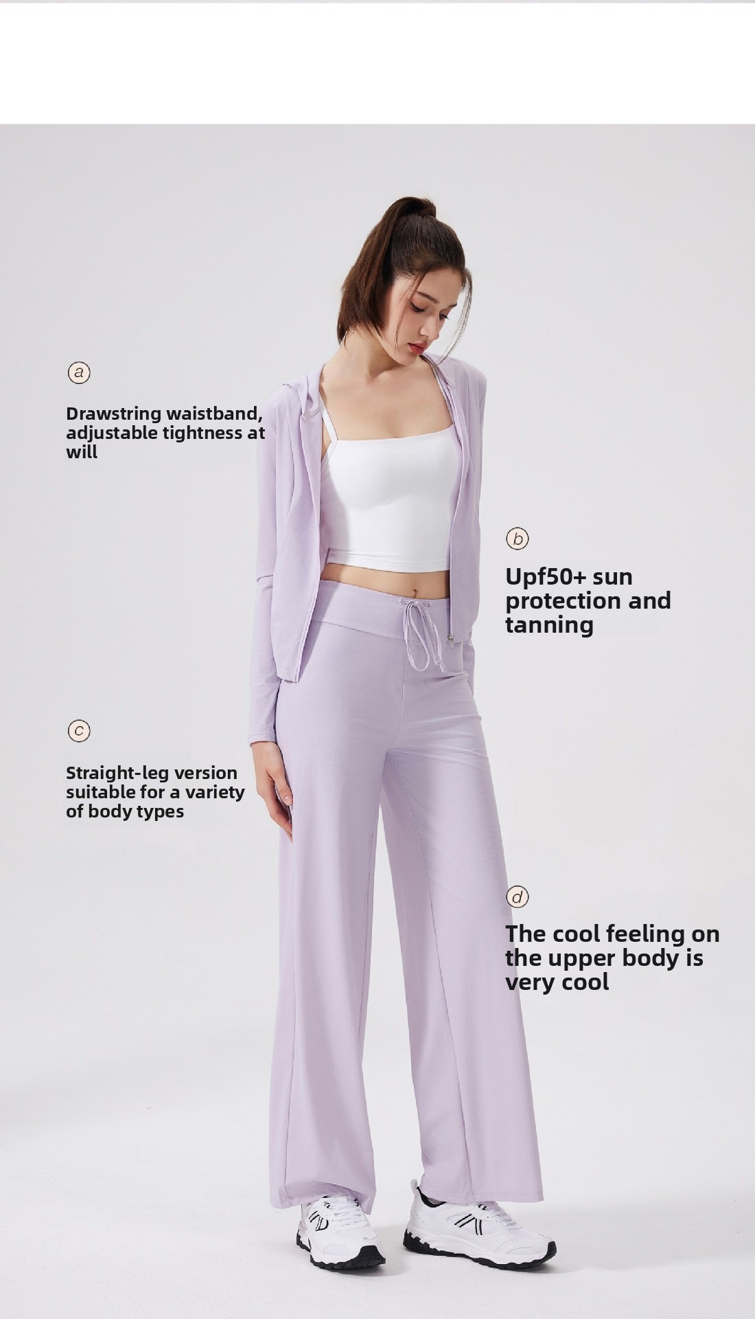MAD LION Sports Loose Fit Sunshade Lightweight Cool Long Pants for Women Straight Casual Yoga Pants Fitness Slimming Quick-Dry Sun Protection Clothing Summer
