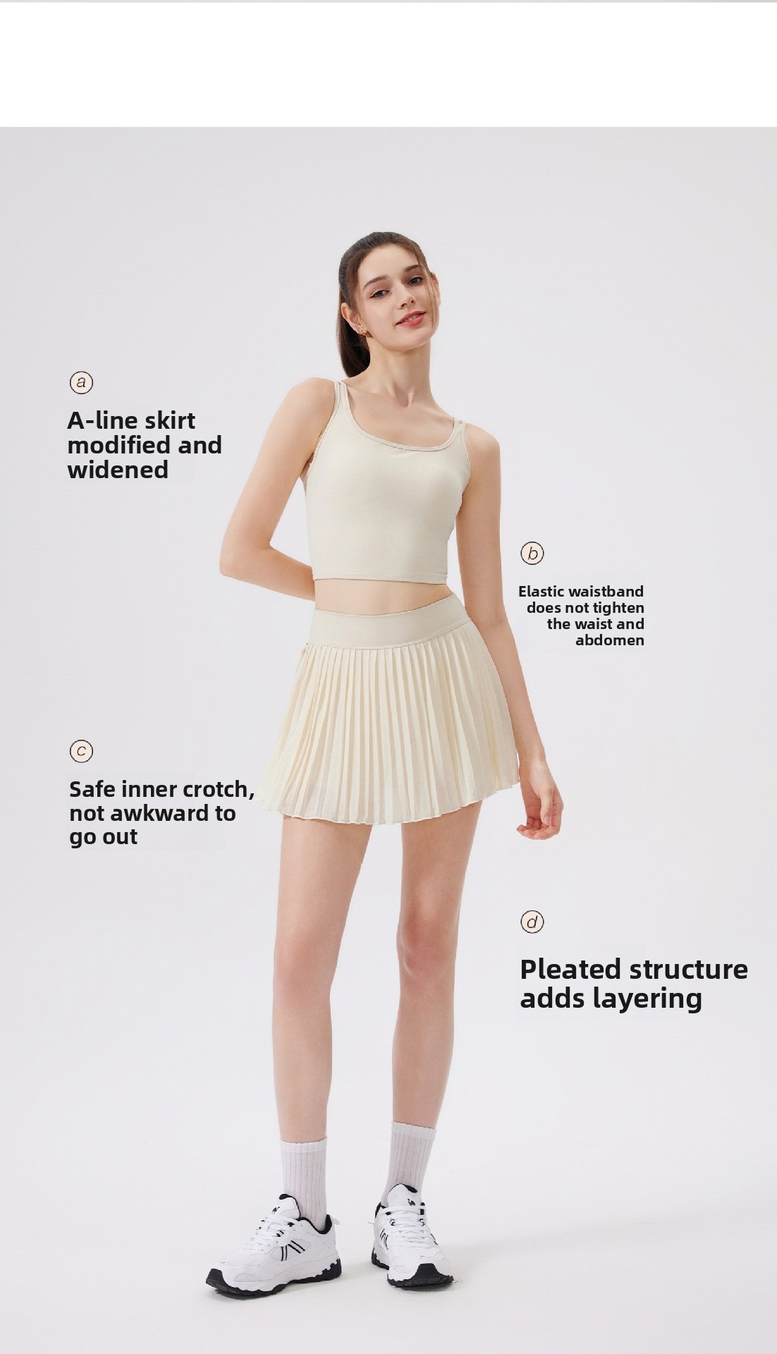 Key features include built-in compression shorts for full coverage during intense workouts and a discreet side pocket to securely hold small essentials like keys or cards. The pleated design adds a touch of feminine charm, making it versatile enough to transition from the court to brunch with friends. The elasticated waistband provides a customized fit without digging into the skin, while moisture-wicking technology keeps you cool and dry during high-energy activities.